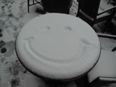 How thrilled I was to find out that it snowed almost 5cm of snow the night before! The coffee table in the lawn was snow-capped. LOL. So I tried the impossible - making a mini snow man on the table... So that the next person who came by would be able to see my masterpiece!